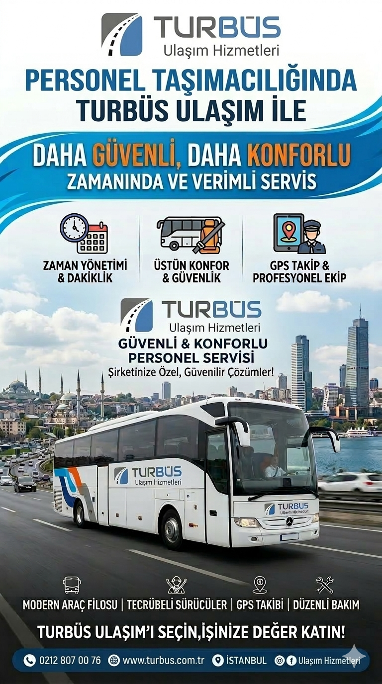 Ekonomik ulaşım çözümleri ile en uygun kilometre ve zaman hesaplaması yapılarak rota oluşturan Turbüs Ulaşım Servis Taşımacılığı alanında en uygun teklifler vererek sizlere kaliteli ve zamanında gelen, iletişim becerileri yüksek kişilerden seçilen servis sürücülerimiz ile kaliteli personel taşımacılığı hizmeti vermektedir.
